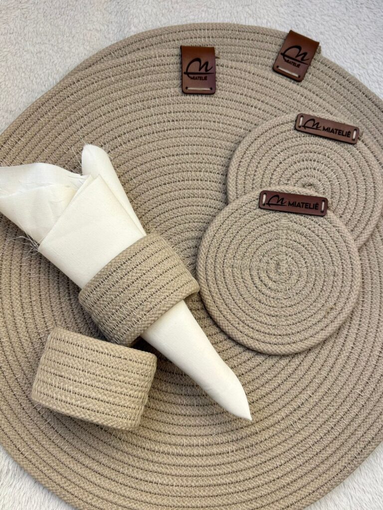 Diferenciais: Conjunto feito à mão, resistente, lavável e de fácil manutenção. Ideal para compor mesas de café da manhã, almoços especiais ou jantares acolhedores.