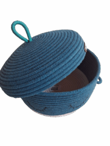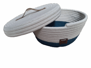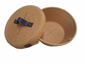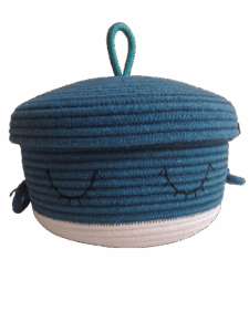 Medidas: Cesto: 11 cm (altura) x 22 cm (diâmetro) | Tampa: 3 cm (altura) x 23 cm (diâmetro).